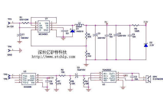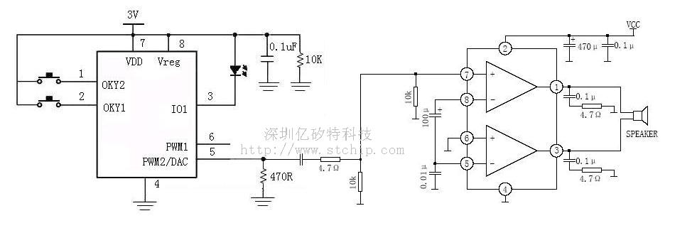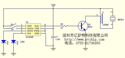 語音芯片SC020B驅(qū)動蜂鳴片放大電路