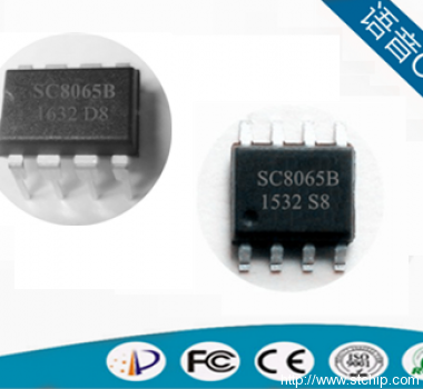 The SC8065 are single-chip voice synthesizing CMOS IC. They are embedded EPROM architecture, and OTP (One Time Programmable) Speech chip, Each body has one input and two I/O pins. Through accurate internal oscillation, external Rosc is unnecessary. There is only one PWM output for voice. Thus any external component is not required.Maximum 128 voice groups.Serial trigger mode maximum 127 voice groups ,moble One Group contain several steps(voice section ); Maximum 1536 steps for all the Groups. Each Step can be define Trigger Mode, Output Status, Voice Section, Mute length, I/O Type & Simple Programming Function. Support three mode trigger IC (Stand Alone, Serial Trigger Mode ). Easy use development system is for function selection and voice combination . PC download the ROM code by the OTP_Writer.